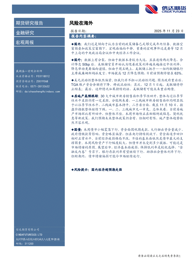 信达期货-宏观周报:会议落定,扰动因素再次聚焦海外-251214
