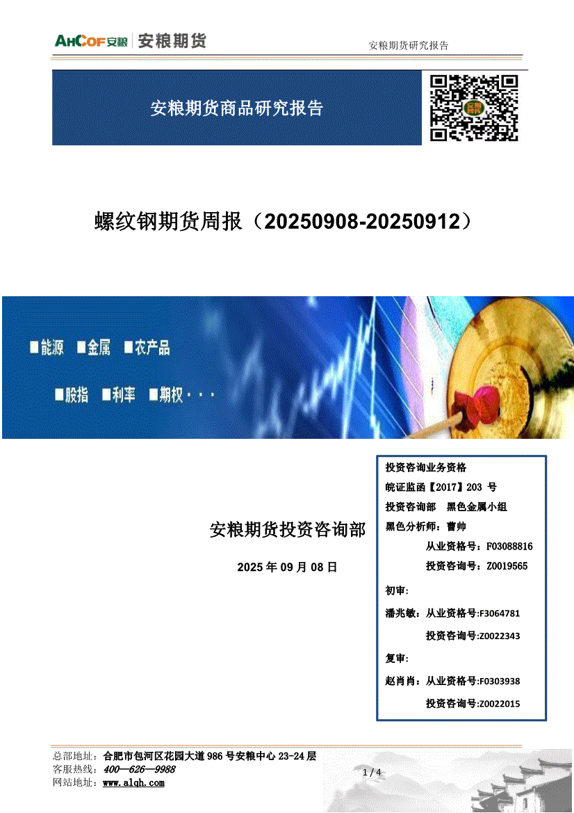 安粮期货-螺纹钢期货周报:钢材,基本面边际走弱,警惕钢材库存持续累库影响-250908