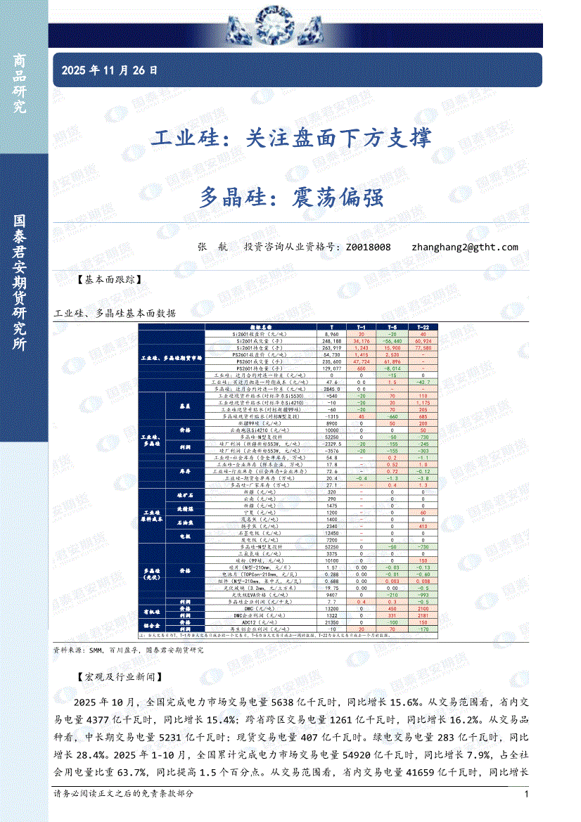 国泰君安期货-工业硅:区间震荡为主,多晶硅,关注2512合约持仓-251128