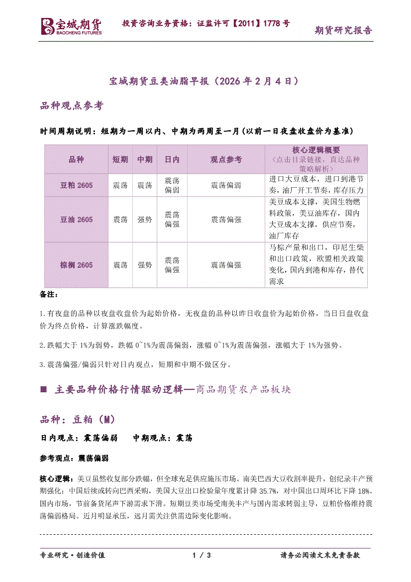 宝城期货-豆类油脂早报-260203