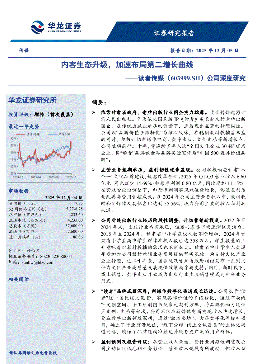 读者传媒:华龙证券-读者传媒-603999-公司深度研究:内容生态升级,加速布局第二增长曲线-251205