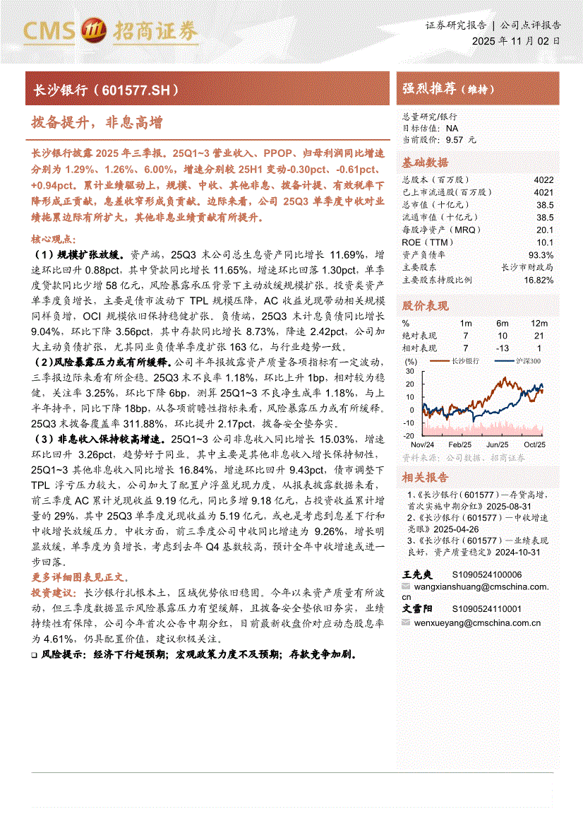 长沙银行:招商证券-长沙银行-601577-拨备提升,非息高增-251102