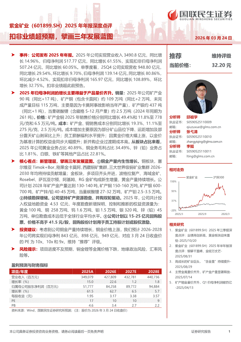 国联民生证券-紫金矿业-601899-2025年年报深度点评:扣非业绩超预期,擘画三年发展蓝图-260324