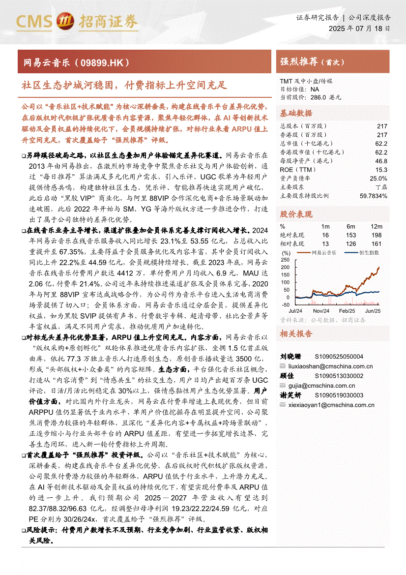 网易云音乐:招商证券-网易云音乐-9899.HK-社区生态护城河稳固,付费指标上升空间充足-250718
