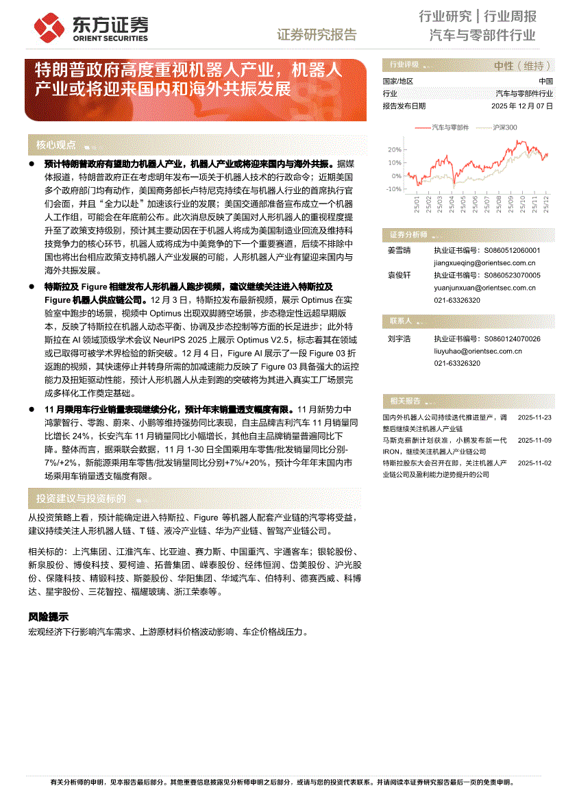 汽车与零部件行业:东方证券-汽车与零部件行业:特朗普政府高度重视机器人产业,机器人产业或将迎来国内和海外共振发展-251207