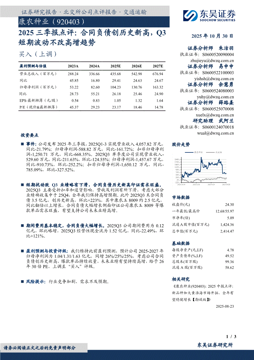 康农种业:东吴证券-康农种业-920403-2025三季报点评:合同负债创历史新高,Q3短期波动不改高增趋势-251030