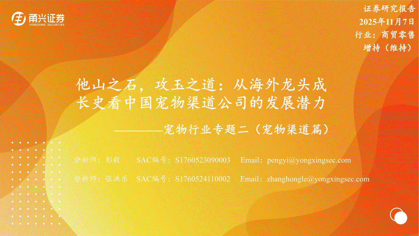 宠物行业:甬兴证券-宠物行业专题二(宠物渠道篇):他山之石,攻玉之道,从海外龙头成长史看中国宠物渠道公司的发展潜力-251107