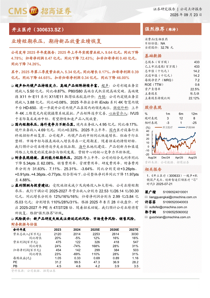 招商证券-开立医疗-300633-业绩短期承压,期待新品放量业绩恢复-250828