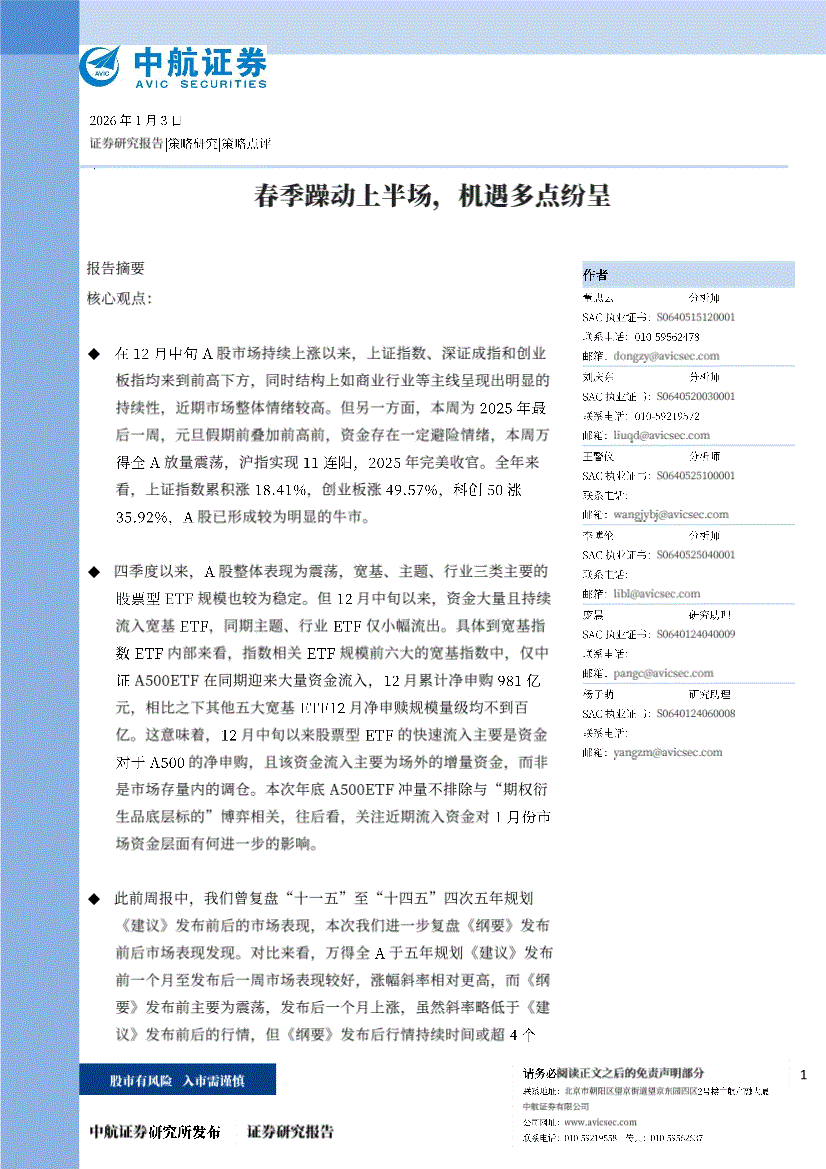 中航证券-策略点评:春季躁动上半场,机遇多点纷呈-260103