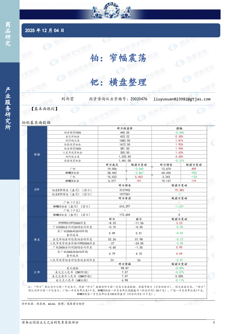 国泰君安期货-铂钯周报-251214