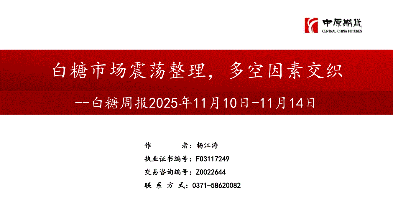 中原期货-白糖周报:白糖市场震荡整理,多空因素交织-251117