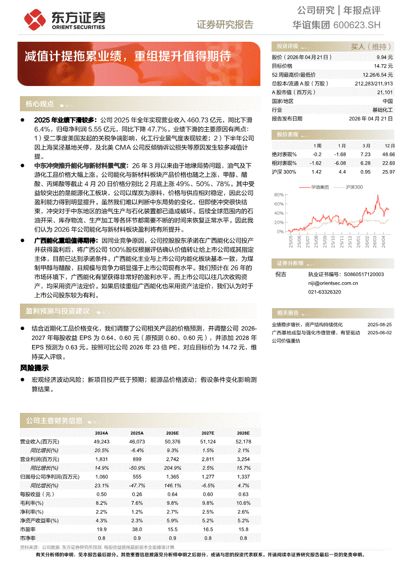东方证券-华谊集团-600623-年报点评:减值计提拖累业绩,重组提升值得期待-260421