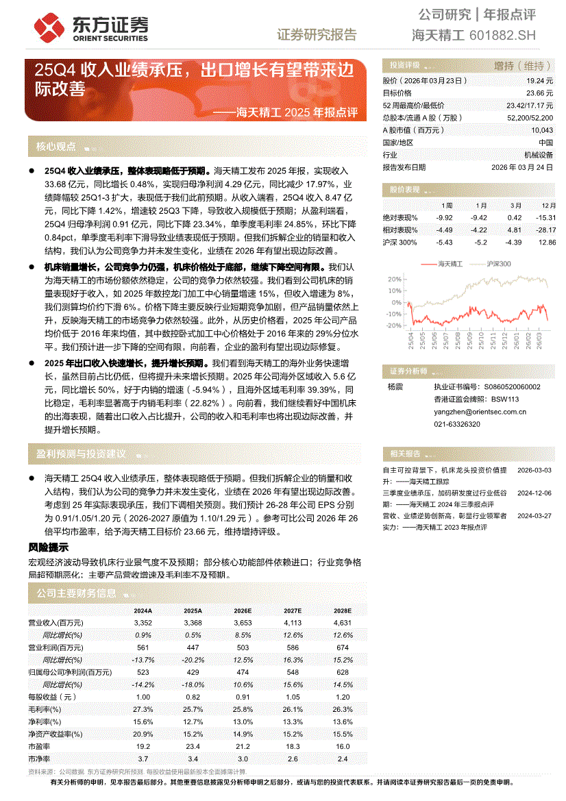 海天精工:东方证券-海天精工-601882-2025年报点评:25Q4收入业绩承压,出口增长有望带来边际改善-260324