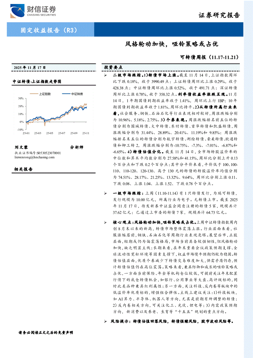 财信证券-可转债周报:风格轮动加快,哑铃策略或占优-251117