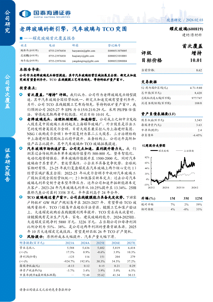 耀皮玻璃:国泰海通证券-耀皮玻璃-600819-首次覆盖报告:老牌玻璃的新引擎,汽车玻璃与TCO突围-260203