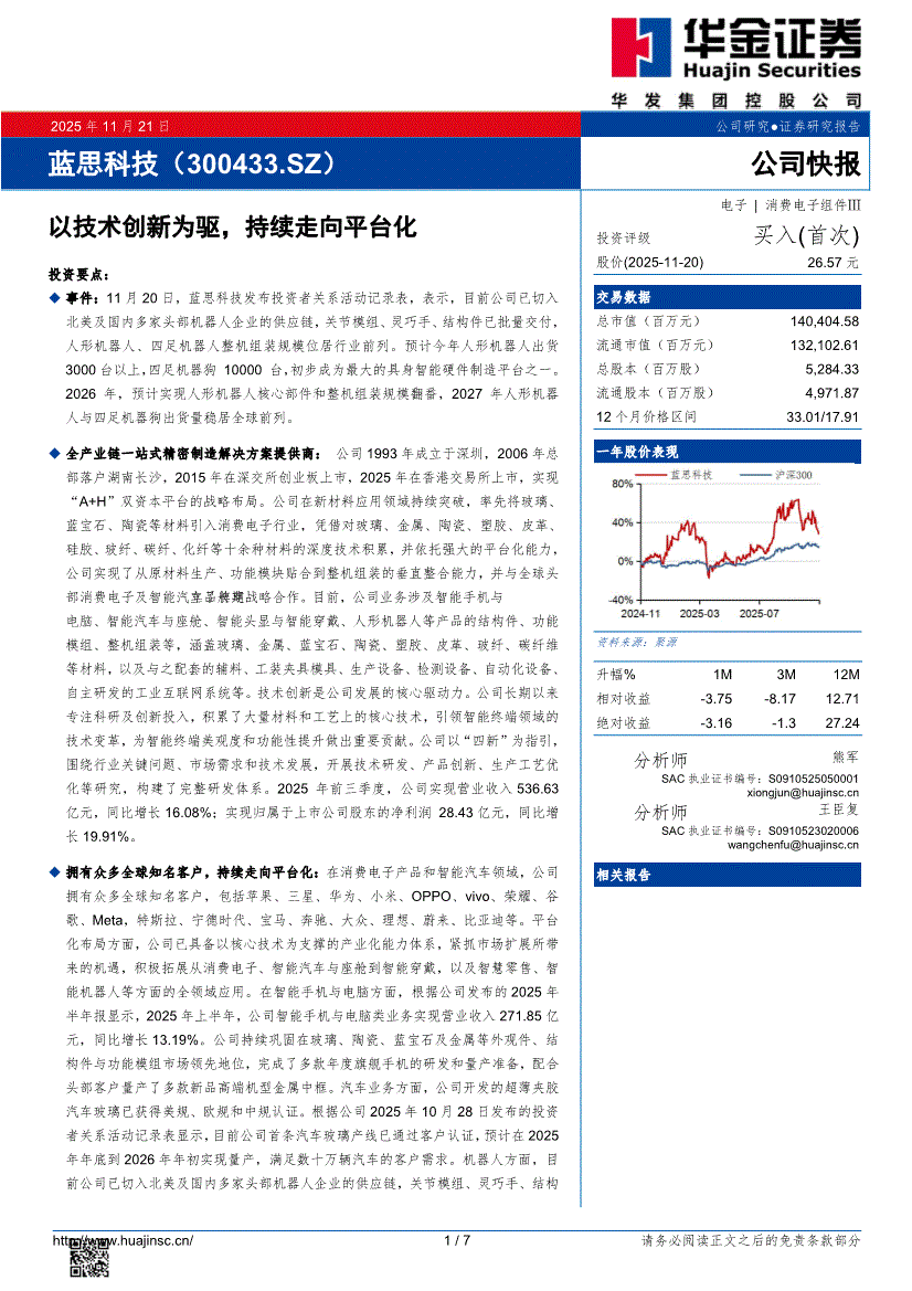 蓝思科技:华金证券-蓝思科技-300433-以技术创新为驱,持续走向平台化-251121