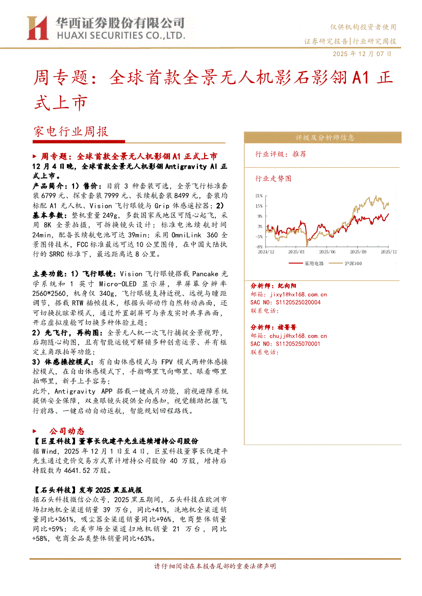 家电行业:华西证券-家电行业周报:周专题,全球首款全景无人机影石影翎A1正式上市-251207