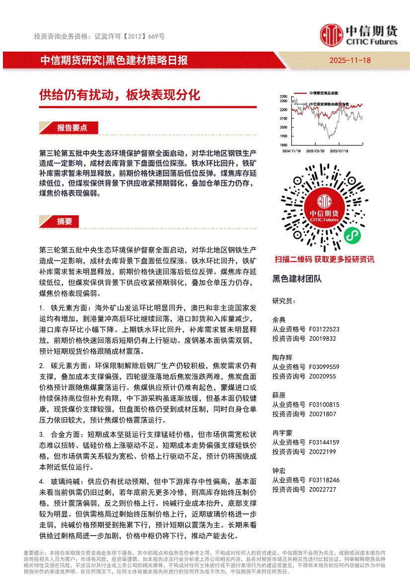 中信期货-黑色建材策略日报:淡季产业表现中性,焦煤供给扰动有限-251112