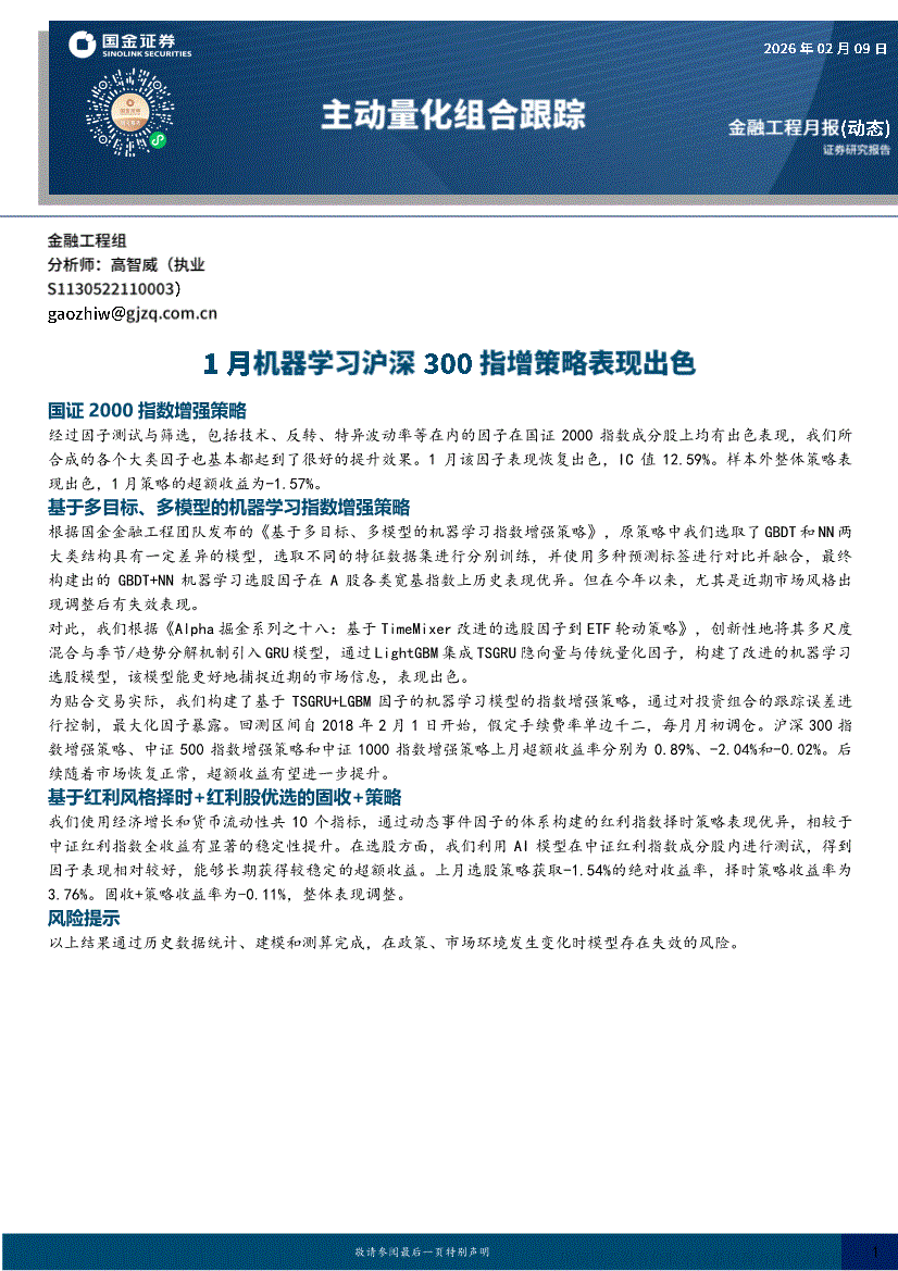 国金证券-主动量化组合跟踪:1月机器学习沪深300指增策略表现出色-260209