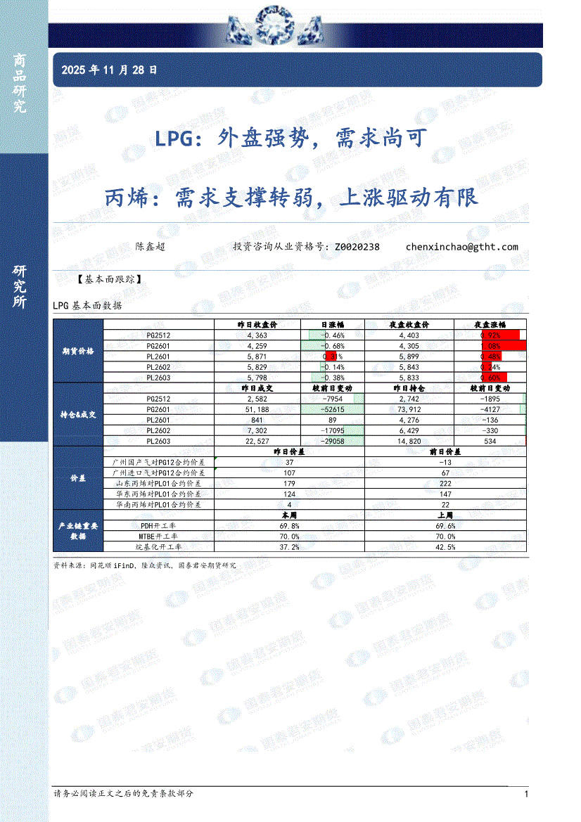 国泰君安期货-LPG:外盘强势,需求尚可,丙烯,需求支撑转弱,上涨驱动有限-251128
