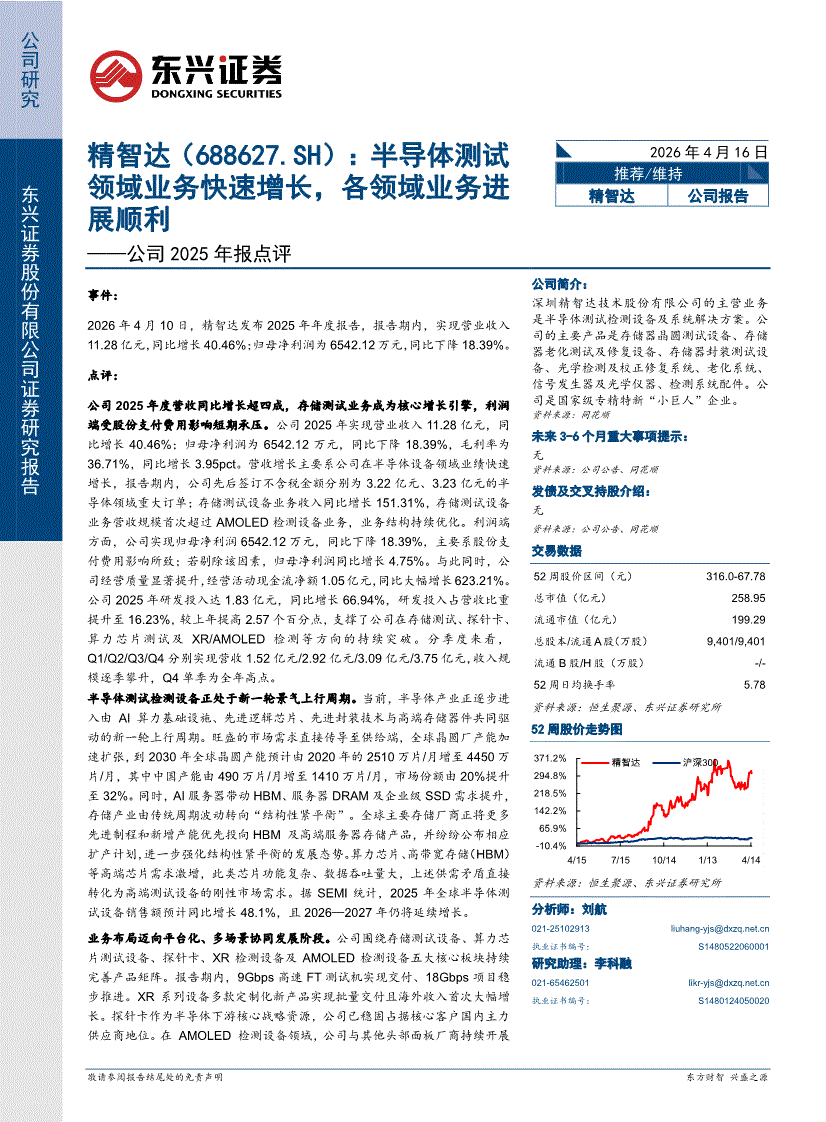 东兴证券-精智达-688627-公司2025年报点评:半导体测试领域业务快速增长,各领域业务进展顺利-260416