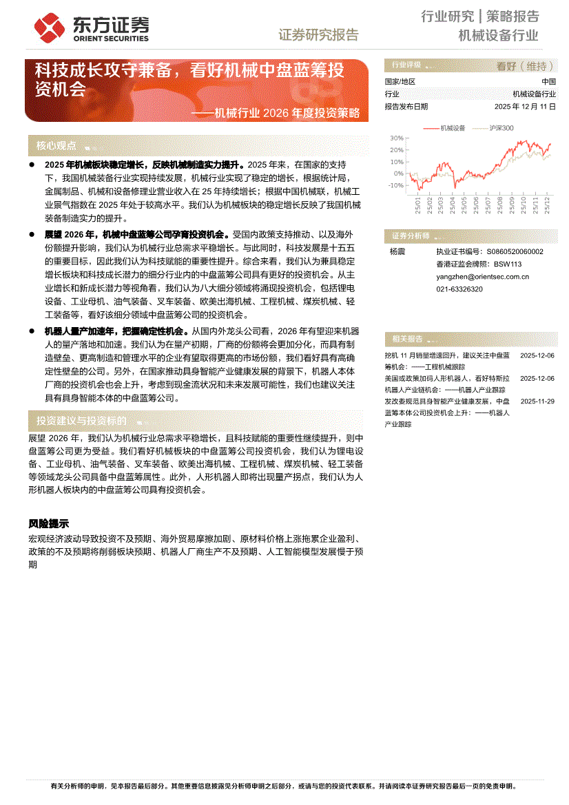 机械设备行业:东方证券-机械行业2026年度投资策略:科技成长攻守兼备,看好机械中盘蓝筹投资机会-251211