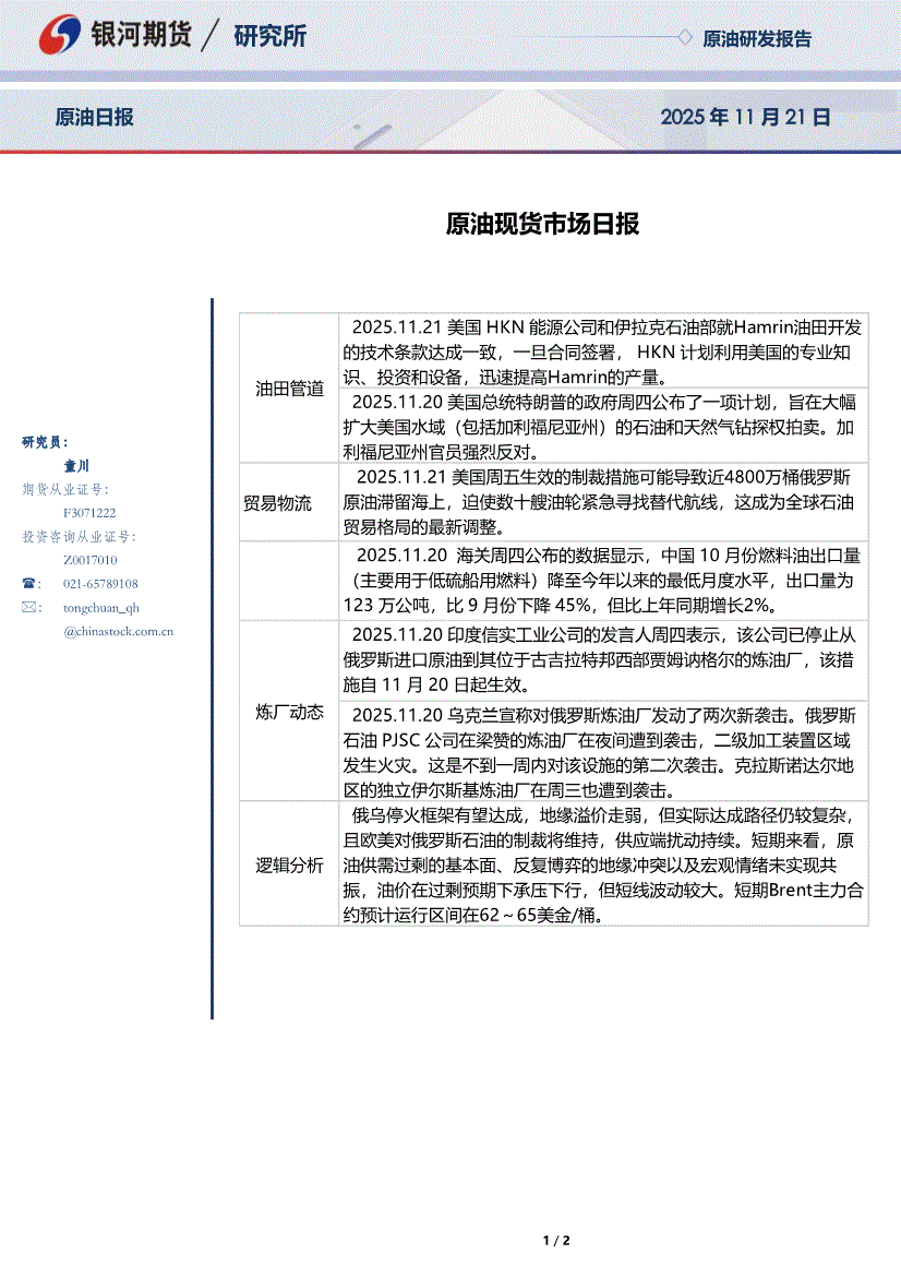 银河期货-原油12月报:过剩压力显著,地缘风险尚存-251127