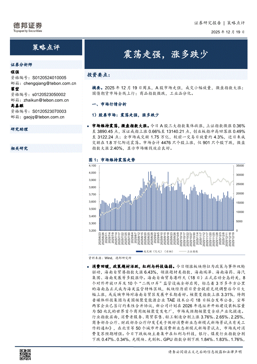 德邦证券-策略点评:震荡走强,涨多跌少-251219