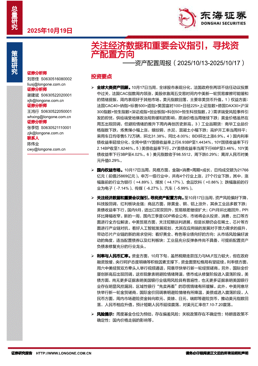 东海证券-资产配置周报:关注经济数据和重要会议指引,寻找资产配置方向-251019