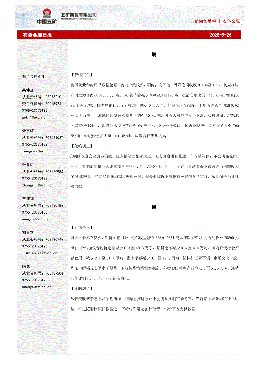 五矿期货-铜周报:中美经贸谈判变化左右市场情绪-251018