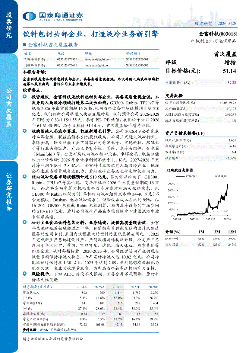 金富科技:国泰海通证券-金富科技-003018-首次覆盖报告:饮料包材头部企业,打造液冷业务新引擎-260420