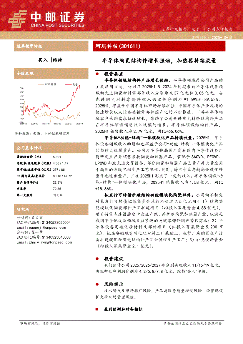 珂玛科技:中邮证券-珂玛科技-301611-半导体陶瓷结构件增长强劲,加热器持续放量-251016