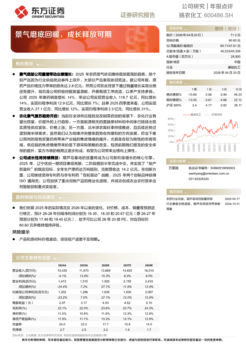 扬农化工:东方证券-扬农化工-600486-年报点评:景气磨底回暖,成长释放可期-260420