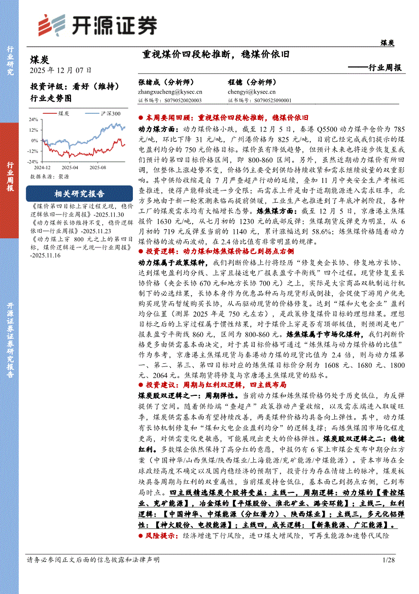 煤炭行业:开源证券-煤炭行业周报:重视煤价四段轮推断,稳煤价依旧-251207