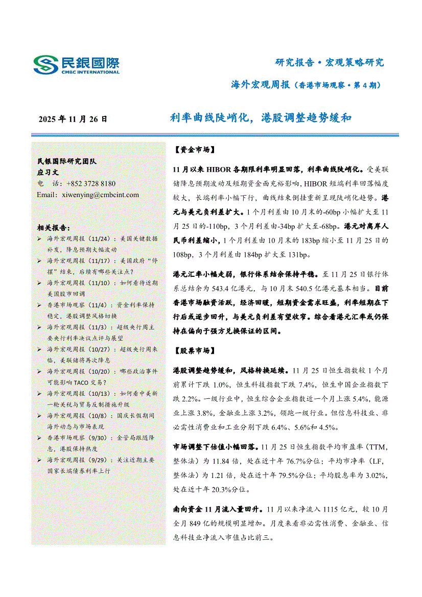 民银国际-海外宏观周报(香港市场观察·第4期):利率曲线陡峭化,港股调整趋势缓和-251126
