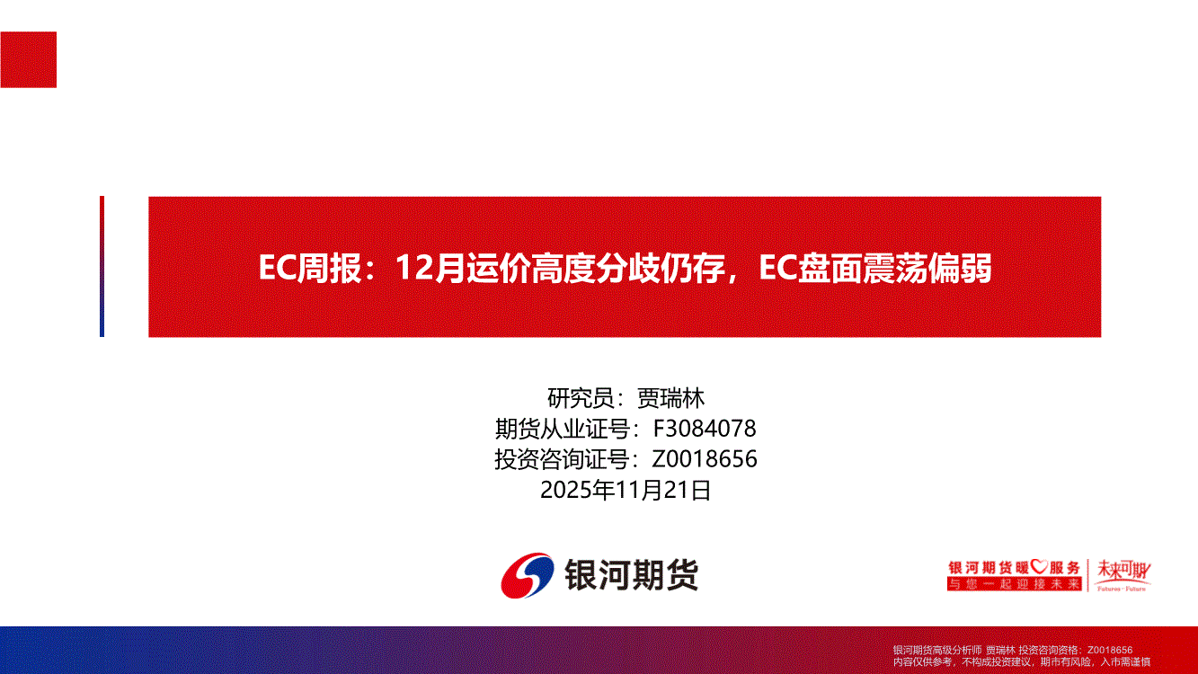 银河期货-EC周报:12月运价高度分歧仍存,EC盘面震荡偏弱-251121
