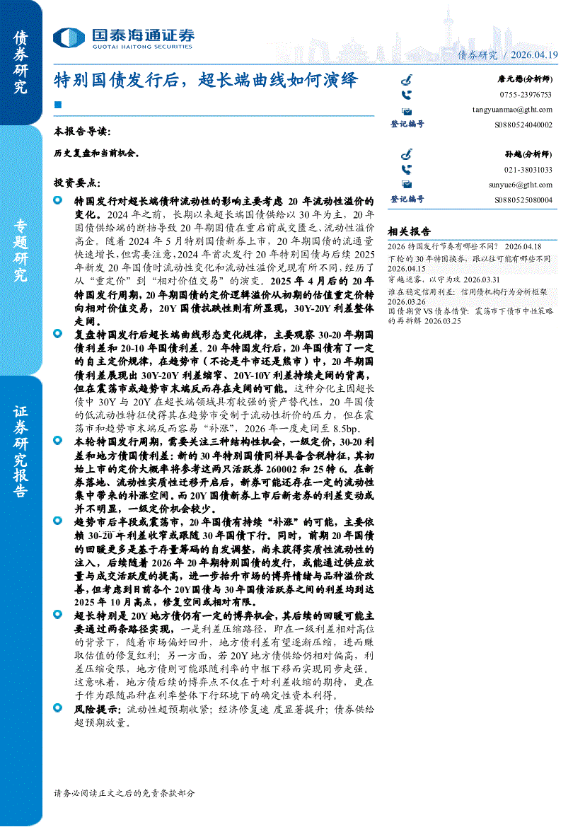 国泰海通证券-特别国债发行后,超长端曲线如何演绎-260419