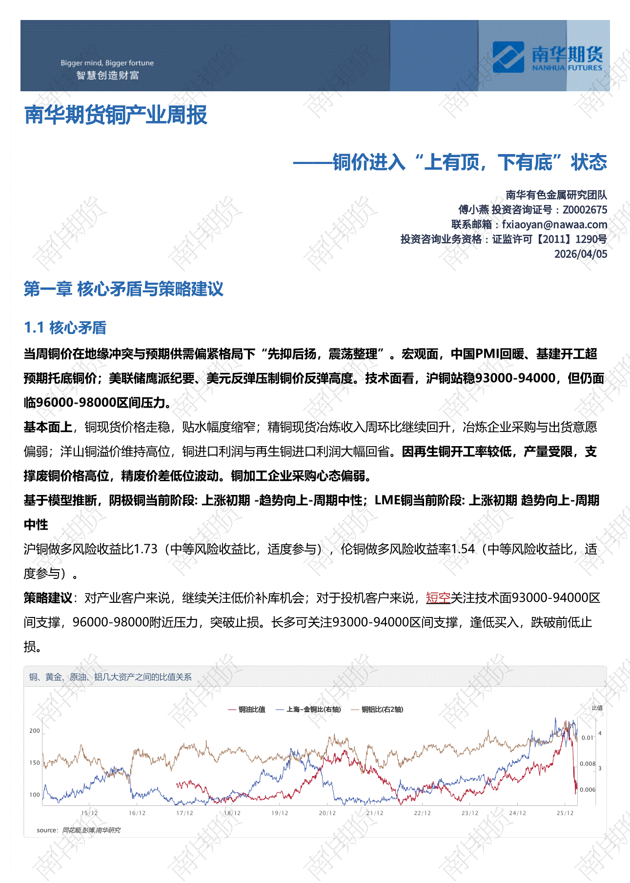 南华期货-铜产业周报:铜价进入“上有顶,下有底”状态-260405