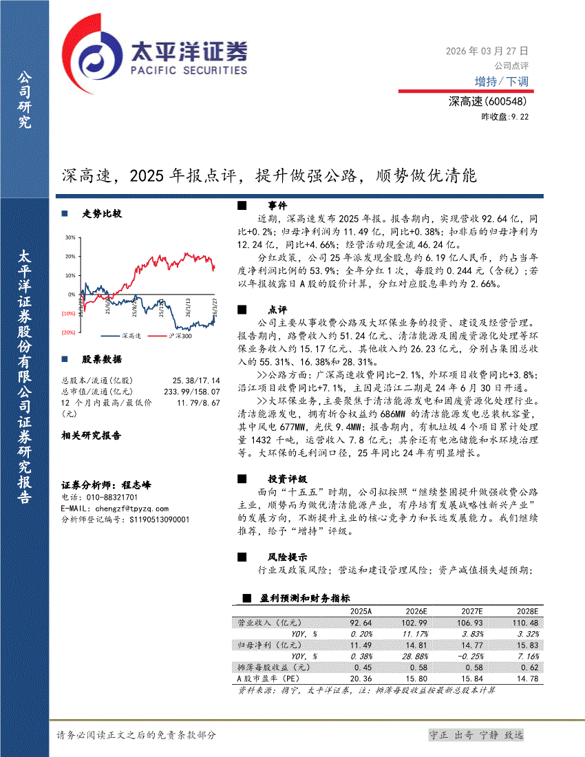 深高速:太平洋证券-深高速-600548-2025年报点评:提升做强公路,顺势做优清能-260327