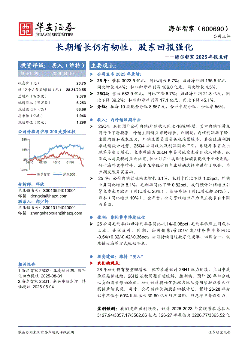 海尔智家:华安证券-海尔智家-600690-2025年报点评:长期增长仍有韧性,股东回报强化-260410