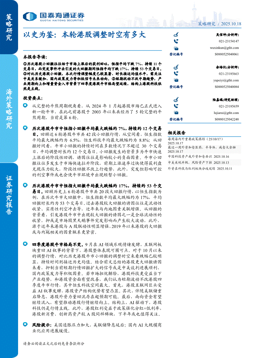国泰海通证券-以史为鉴:本轮港股调整时空有多大-251018