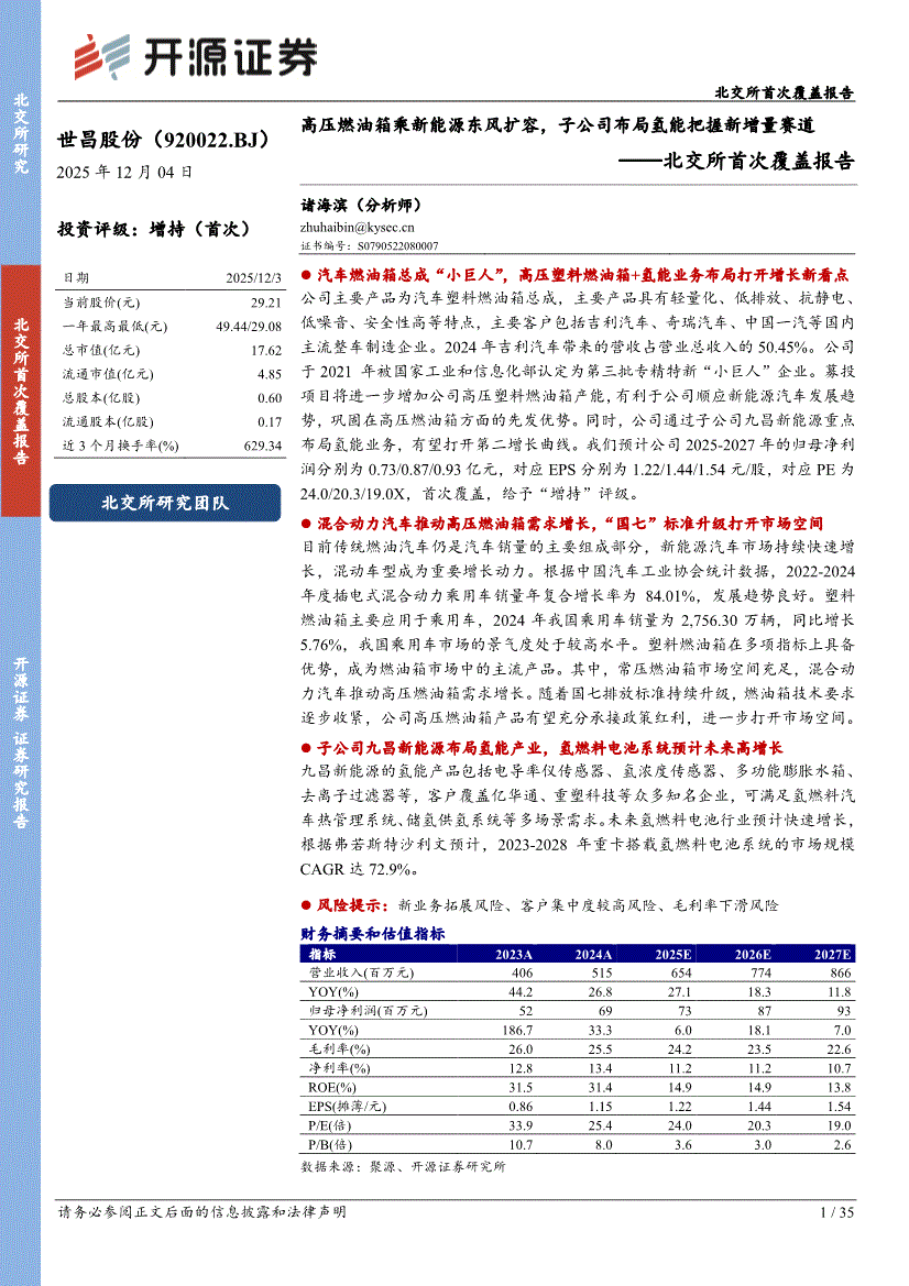 世昌股份:开源证券-世昌股份-920022-北交所首次覆盖报告:高压燃油箱乘新能源东风扩容,子公司布局氢能把握新增量赛道-251204