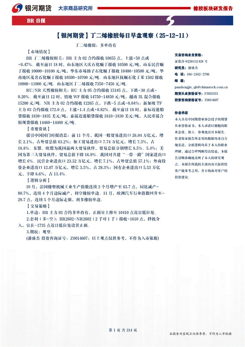 银河期货-丁二烯橡胶每日早盘观察-251211