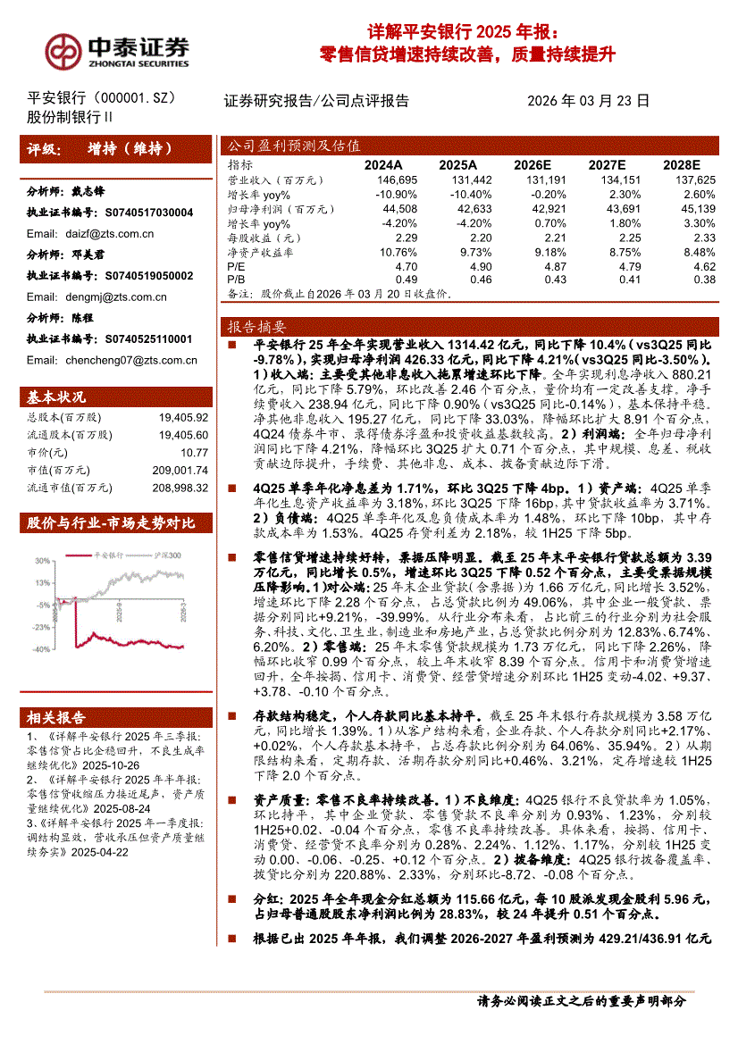 平安银行:中泰证券-平安银行-000001-详解平安银行2025年报:零售信贷增速持续改善,质量持续提升-260323