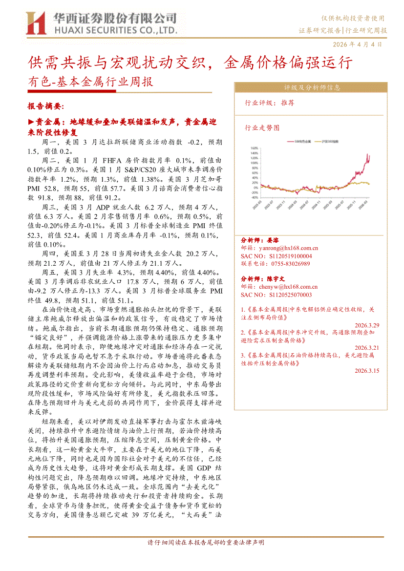 有色~基本金属行业:华西证券-有色~基本金属行业周报:供需共振与宏观扰动交织,金属价格偏强运行-260404
