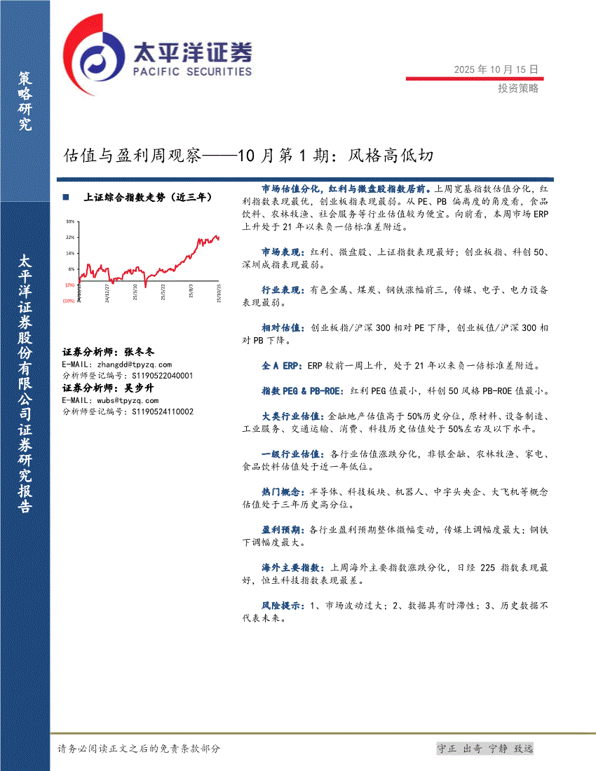 太平洋证券-估值与盈利周观察——10月第1期:风格高低切-251015