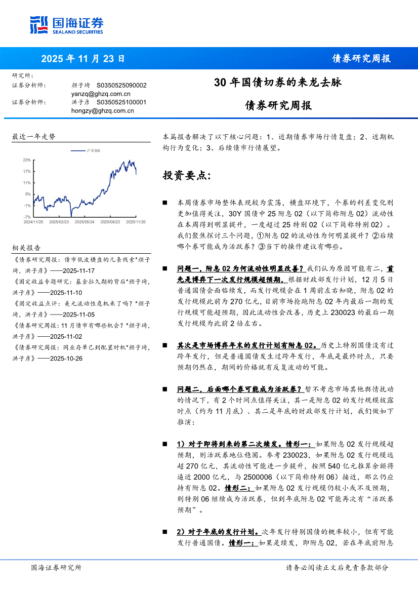 国海证券-债券研究周报:30年国债切券的来龙去脉-251123