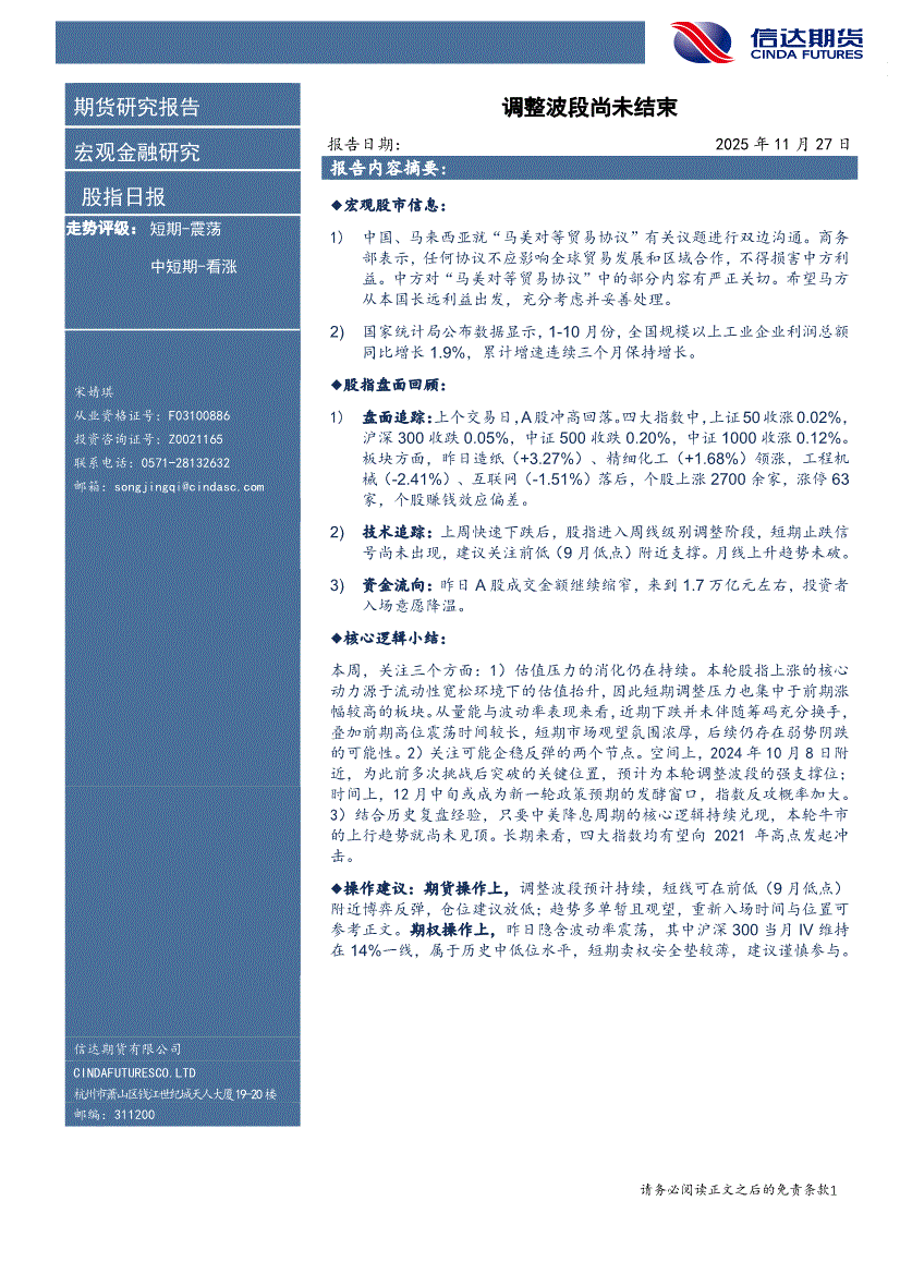 信达期货-股指周报:调整波段尚未结束,等待新一轮驱动-251123