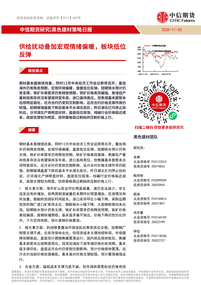 中信期货-黑色建材策略日报:供给扰动叠加宏观情绪偏暖,板块低位反弹-251125