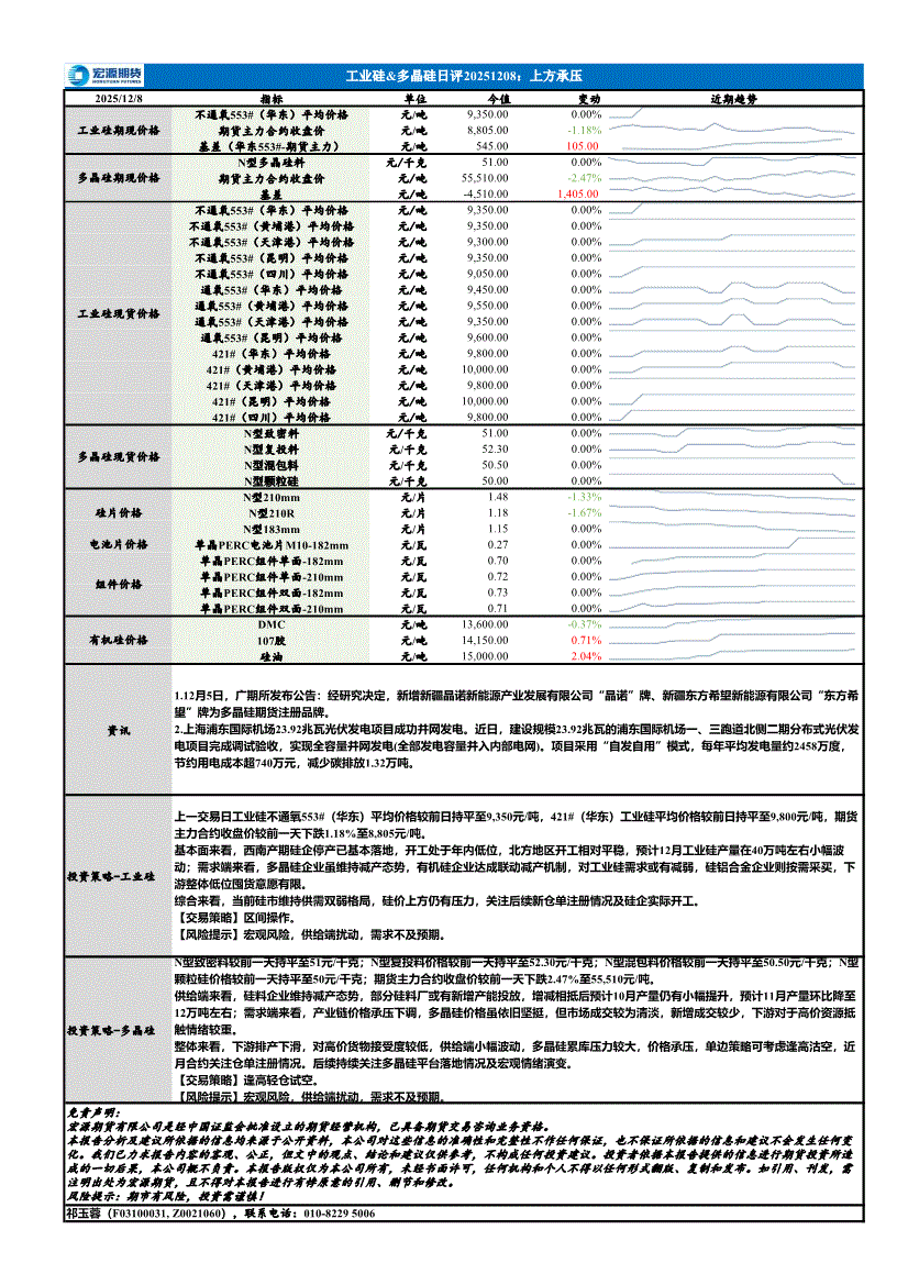 宏源期货-工业硅&多晶硅日评:上方承压-251208